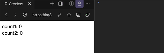 可以看到在 context 中包含了 count1 和 count2 以及改变它们状态的方法,在 <Count1 /> 与 <Count2 /> 组件中分别引用了 count1 和 count2,当修改 count1 状态时可以发现 <Count2 /> 组件也会发生 re-render,也就是重新渲染。很显然这里有性能上的问题,我们希望当 count1 状态发生变化时,不依赖该状态的组件不发生 re-render。